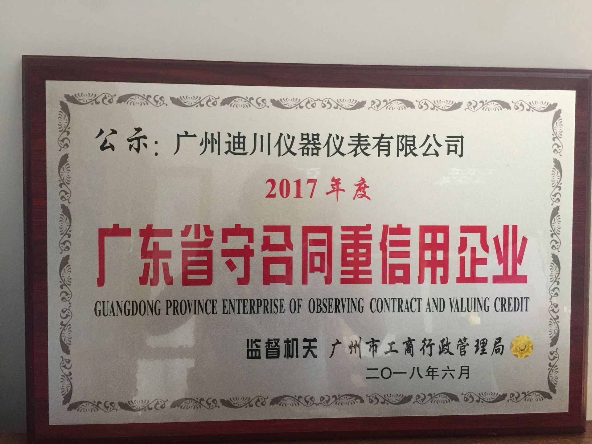 熱烈(lie)祝賀公司榮(rong)獲2017年度廣東(dōng)省守合同重(zhong)信企業