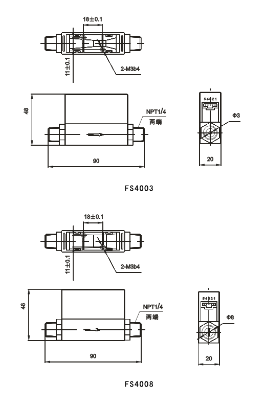 微型氣體(ti)流量計MF4008
