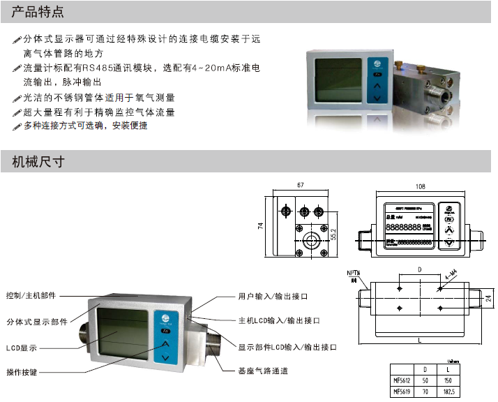 MF5600系列質量流量(liàng)計專門爲需要顯(xiǎn)示器和表體分離(li)❌的應🌐用需求而設(she)計的。例如供氧系(xi)統小型空分系🐅統(tong)。該流量計的♈标準(zhǔn)工業用戶界面 (RS485/4~20mA)及用戶自定報(bào)警功能更好實現(xiàn)的異地或測控。現(xian)有的産品是 MF5612和 MF5619可分别測(cè)量 0-300SLPM和 0-800SLPM氣(qì)體流量。可用于各(gè)類氣體及微流體(ti)的流量計量和測(cè)控,爲傳😘統的流體(ti)計量帶來了根本(běn)性變革,提❄️供了全(quán)新的拓展空間。 ,MF5619工業制造業用(yong)氣測量及過程控(kòng)制,環保等多個領(lǐng)域;在中心供氧、制(zhi)氧設備、分床計費(fèi)系統,食品加工,科(kē)學氣體分析🐪儀器(qi),樓宇自控,民用健(jiàn)身、設備等領🛀域也(ye)有🧑🏾🤝🧑🏼廣泛的應用;在(zai)全新的㊙️燃料電池(chi)等*科技領域亦有(you)不可替代的應用(yòng)。 有什麽技術(shù)請迪川儀器儀表(biǎo)有限公司